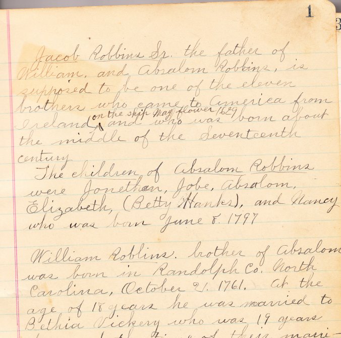 (Jacob Robbins-William Robbins/Absalom Robbins-Nathaniel Robbins/Nancy Robbins-William Franklin Robbins-Nancy Adeline (Robbins) Ball-Ada Orena (Ball) McConnell)