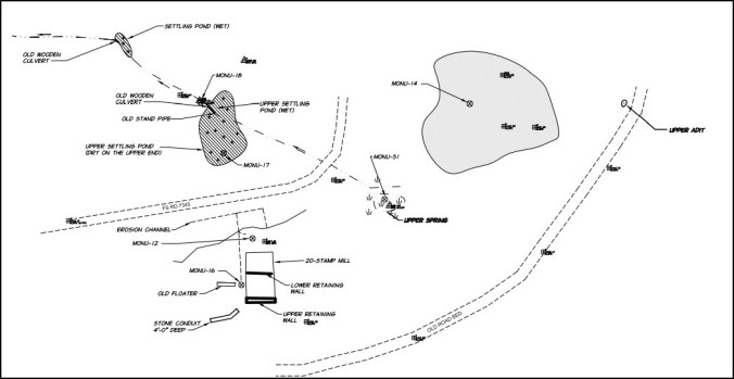 Outline of Monumental Mine remains as drawn by National Forest Service site inspection