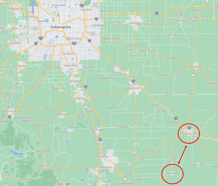 Closest Airports: Indianapolis, Indiana (IND) – located on the southwest side of the city – and Cincinnati, Ohio (CVG) – actually located across the Ohio River in Kentucky; both are approximately 1-hour from Greensburg, Indiana.