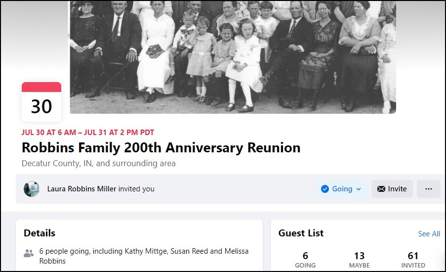 I have created a page on this blog dedicated to the 2022 Bicentennial Robbins Reunion. You can find the link at the top of the page in the center, just below the 1922 reunion photo.