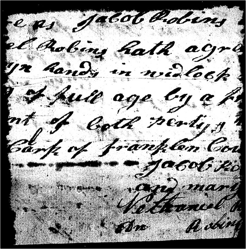 It is said that Rachel Robbins died young, around 1801, and that Jacob Robbins then married Nancy Hanks. This Nancy Hanks should not be confused with Abraham Lincoln’s mother Nancy Hanks – despite wildly inaccurate trees on Ancestry and elsewhere, Abe’s mother was not married to Jacob Robbins before Thomas Lincoln. However, it is believed that she was a cousin of Abe’s mother. I’m not going to go into the murky history here but you can read my previous post about the Robbins-Hanks-Lincoln connection. It is also suggested that Nancy (Hanks) Robbins died early and Jacob married a third time, one suggestion being to a Sarah Jane Johnston. I have found no marriage records between Jacob and anyone other than his first wife, Rachel.