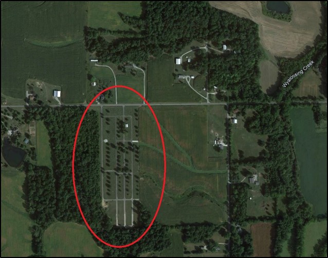The Union Baptist Cemetery, just around the corner from the Mt. Pleasant Cemetery (my first cemetery post in this series; Mt. Pleasant is in the woods in the upper right hand corner of the Google Earth view below), has relatives from a wide variety of branches of the family. Descendants of William Robbins Jr. are buried here including William Gilman Styers and other members of the Styers family; descendants of Marmaduke Robbins, including his granddaughter Jennie Robbins and her husband Tom Vanderbur; Aaron Robbins, a descendant of George; various ubiquitous Skinner descendants of Charity (Robbins) (Hanks) Purvis; and descendants of Thomas Jr. and Matilda Robbins, most of whose family lived in Jennings county.