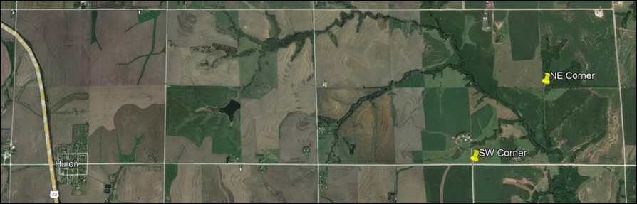 The Deweese quarter section was the area between the two marked corners – the small community of Huron is to the left
