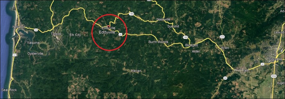 The most amazing discovery was that Melissa and her two children ended up in a wide-spot in the road known as Eddyville, about an hour north of me, just inland from the Oregon coast. The biggest question, still unresolved, is why did this family move from Decatur County, Indiana, to Eddyville, Oregon, of all places?
