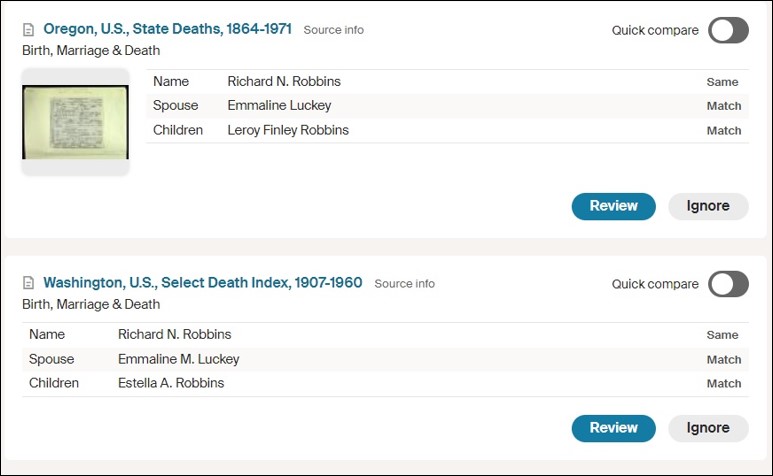 After that, other than the 1880 census, I had been unable to find them in any other records. And then, when I took a fresh look at some of Ancestry’s leaf hints for Richard last month these were the two that made me sit up and take notice: