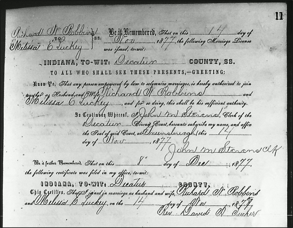 As I do periodically, I recently returned to a family group that I had not looked at in some time to see if I could find any new information. In this case I looked at Richard N. Robbins, a son of Stephen Robbins (c1831-1874), in turn a son of Micajah Robbins, all of Decatur County, Indiana.