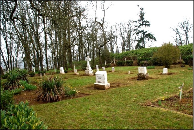 The cemetery was located on the very eastern edge of a part of Robert and Rachel Bird’s large landholding in Clackamas County. Bird was surrounded to the north, west, and south by members of the Robbins family on their respective Donation Land Claims.