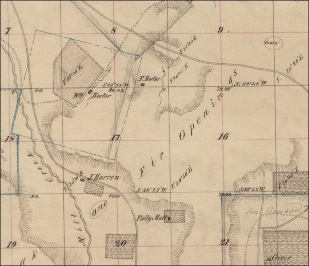 The strangely oblong shaped piece of land that John and Dosha settled on was southeast of the city of Salem, and included part of a ridge – overlooking the future site of the Oregon State Penitentiary to the north and overlooking Mill Creek and the future site of Turner to the south. An early survey map even marks the Herren house along the Salem to Turner road.