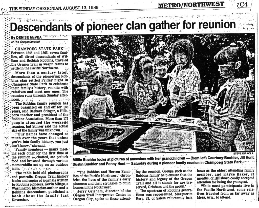 Chris and his wife Anna were the parents one son, Archie Robbins. About his son Chris told Fred Lockley: “My son, Archie, is an expert toolmaker. His health became wrecked while in the service during the World war and he is in the veterans’ hospital at American Lake [Washington].” Sadly, Archie was a pedestrian struck and killed by a car in Tenino, Washington, in 1939.